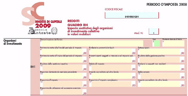 Nel quadro RH “Imposta sostitutiva degli organismi di investimento collettivo in valori mobiliari” inserire direttamente i dati nel modello.