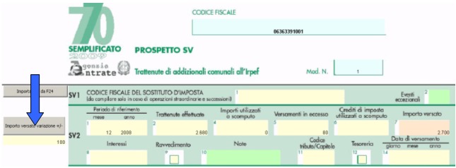 Se occorre effettuare una variazione dell’importo versato è possibile effettuarla dall’apposito campo posto a fianco di ogni rigo : “Importo versato variazione +/-”.