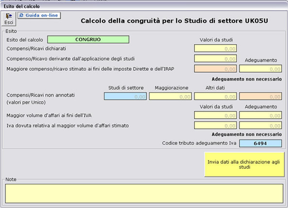 Il tasto è necessario per indicare l’eventuale importo dell’adeguamento agli studi di settore ai fini Irpef, Irap e Iva da riportare in dichiarazione e in Gerico e l’importo dell’eventuale maggiorazione del 3% dovuta e l’importo dell’iva da versare da riportare nella gestione dei pagamenti.