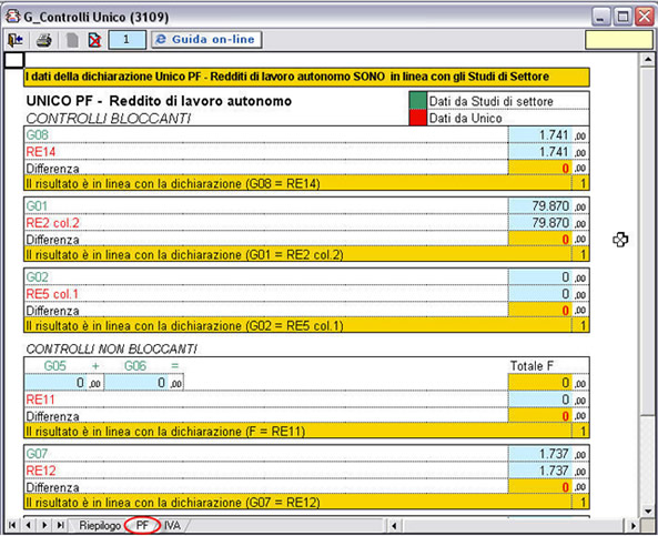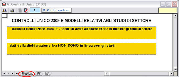 Nella gestione documenti che si apre c’è un primo foglio di riepilogo che indica se i dati indicati nel quadro G sono in linea con i dati indicati in Unico e nella dichiarazione Iva: