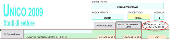 Dopo aver effettuato la quadratura dei dati è necessario inviare i dati al programma “Gerico”, cliccando nel pulsante ; dopo aver lavorato su Gerico il pulsante permette di importare i dati degli elementi contabili presenti nel programma fornito dall’Agenzia delle Entrate.