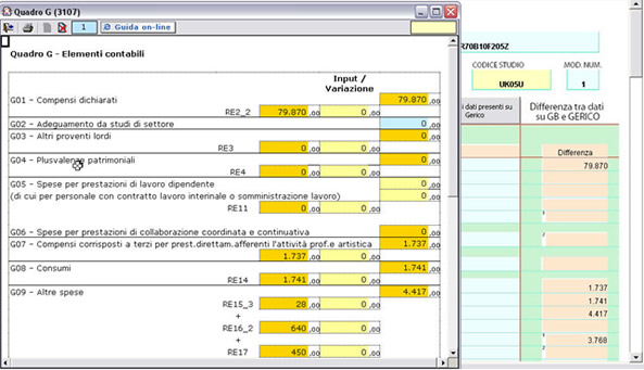 Funzioni del Quadro G - Elementi contabili studi di settore Professionisti