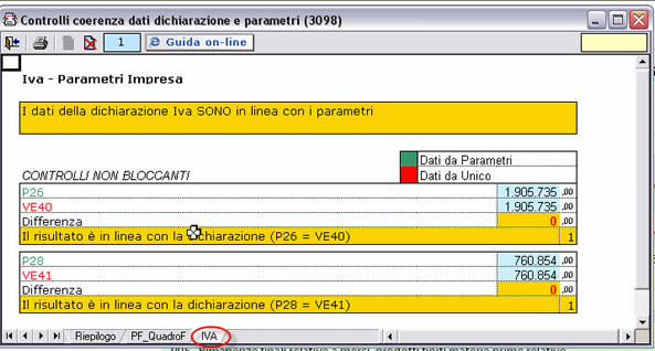 2. Verifica quadratura dei dati indicati nei Parametri e in Unico