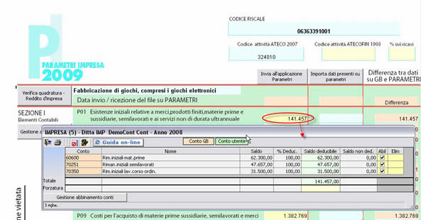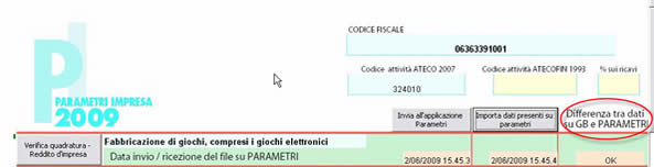 Dopo aver effettuato la quadratura dei dati è necessario inviare i dati al programma “Parametri” cliccando nel pulsante ; il pulsante permette di importare i dati degli elementi contabili presenti nel programma fornito dall’Agenzia delle Entrate.