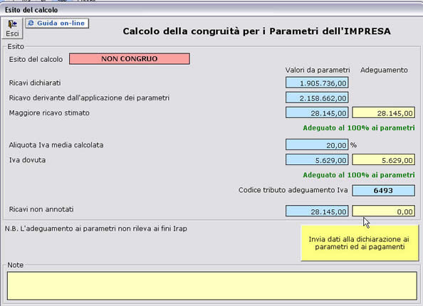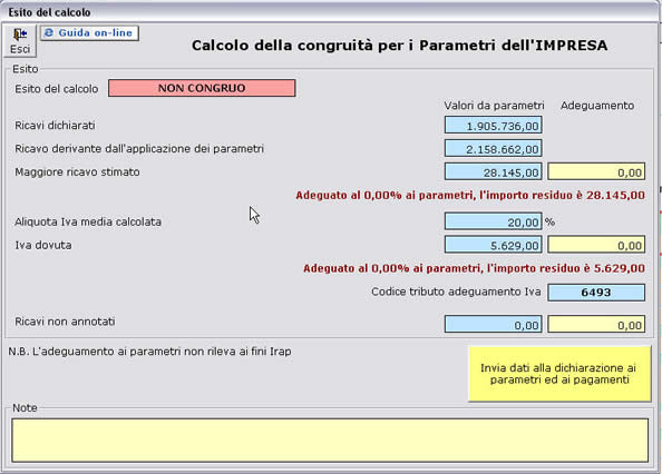 La procedura in automatico riporta l’esito del calcolo “CONGRUO” o “NON CONGRUO” ed i valori per effettuare l’adeguamento.