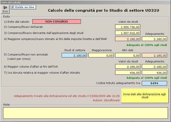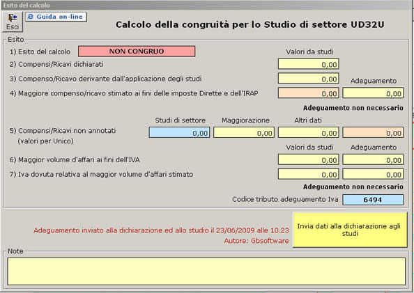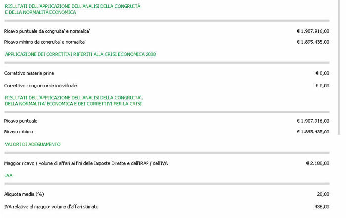 Come si vede nell’esempio nella prima colonna “Valori da Studi” devono essere inseriti manualmente, i dati che emergono dal calcolo dello studio di settore in Gerico. Nella seconda colonna Adeguamento si devono inserire i valori che si voglio utilizzare per adeguarsi.