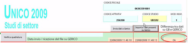 Dopo aver effettuato la quadratura dei dati è necessario inviare i dati al programma “Gerico”, cliccando nel pulsante ; dopo aver lavorato su Gerico il pulsante permette di importare i dati degli elementi contabili presenti nel programma fornito dall’Agenzia delle Entrate.
