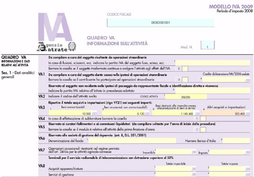 Nella Sezione 1 è stato inserito il rigo VA8 per l’indicazione degli acquisti ed utilizzi di terminali per il servizio radiomobile di telecomunicazione con detrazione superiore al 50%.