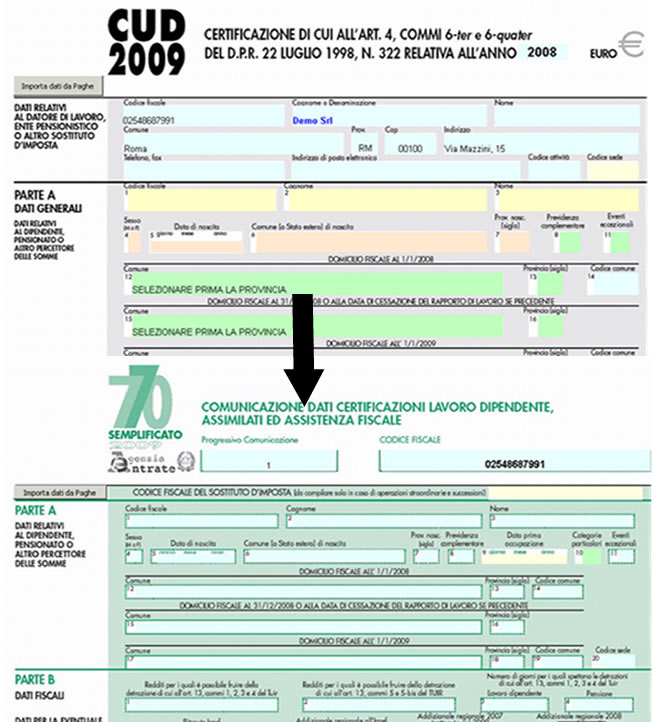 Nel quadro ABCD “COMUNICAZIONE DATI CERTIFICAZIONI LAVORO DIPENDENTE, ASSIMILATI E ASSISTENZA FISCALE” parte dei dati vengono riportati in automatico dal quadro CUD, e parte devono essere inseriti direttamente nella maschera. Per poter compilare il quadro è necessario caricare i dati nel CUD.
