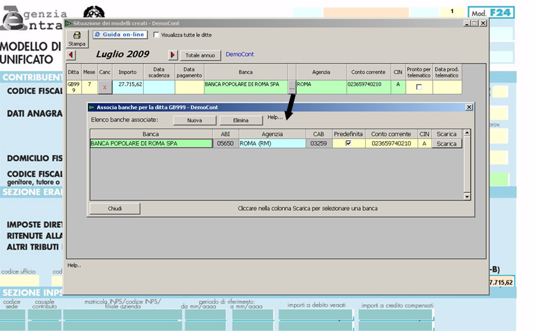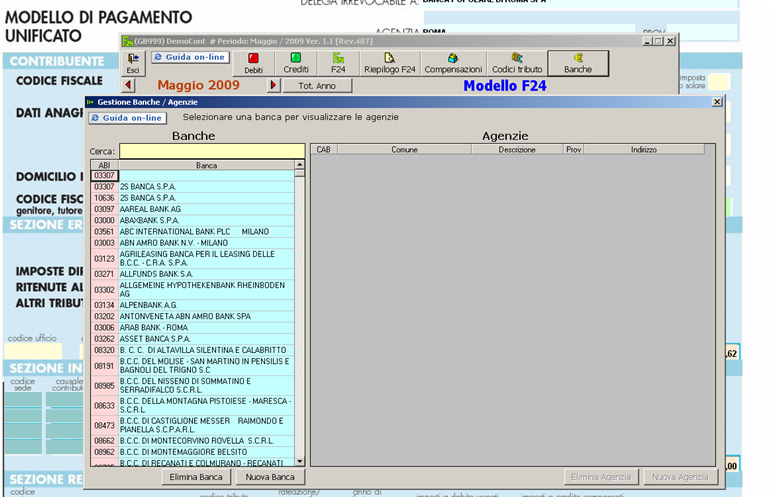 - Eliminare selezionando la Banca o relativa Agenzia, facendo attenzione a non eliminare la Banca e/o Agenzia già utilizzata in F24.