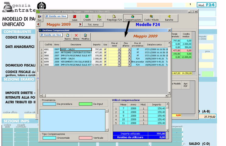 La procedura evidenzia la provenienza e il tipo di compensazione del credito;