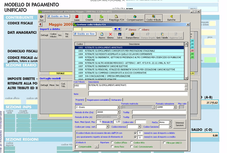 Gestione dei codici tributo