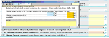 la seconda sezione III dove la procedura calcola automaticamente la somma delle "deduzioni forfetarie delle spese di produzione dei compensi e dei proventi di cui ai righi RL25 e RL26".