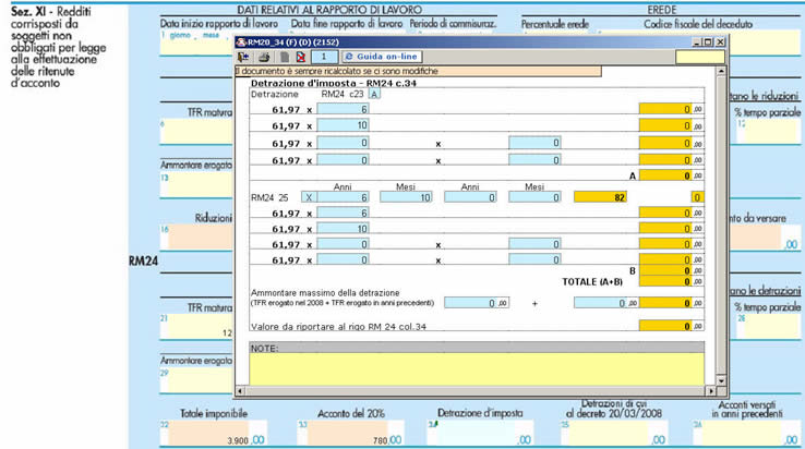 Nella sezione XI “Redditi corrisposti da soggetti non obbligati per legge all’ effettuazione delle ritenute d’acconto” dove la procedura calcola automaticamente la detrazione d’imposta;
