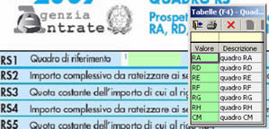 - Nel rigo RS1 selezionare il quadro di riferimento.