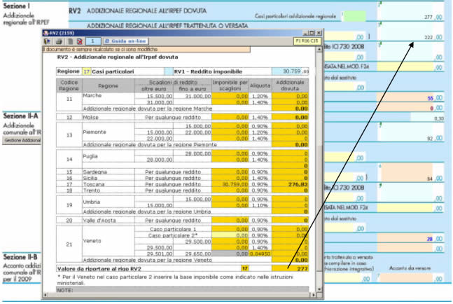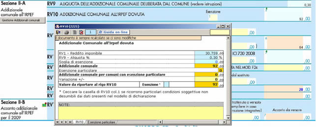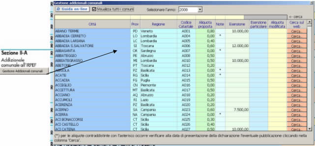 Dal pulsante “Gestione addizionali comunali” si apre la relativa scheda con le aliquote per la determinazione dell’addizionale comunale dovuto e l’acconto per l’anno successivo.