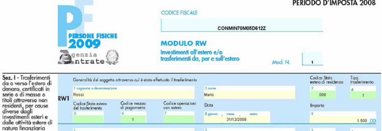 Nel quadro RW  “Investimenti all’estero e/o trasferimenti da, per e sull’estero” inserire direttamente i dati nel modello.