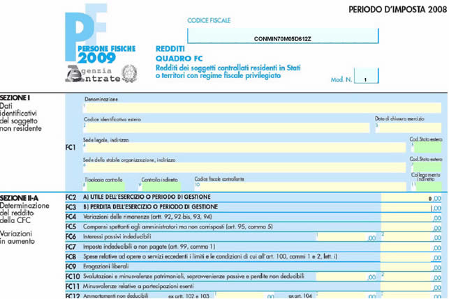 Nel quadro FC “Redditi dei soggetti controllati residenti in Stati o territori con regime fiscale privilegiato” inserire direttamente i dati nel modello.