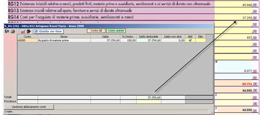 Il quadro RG“Reddito di impresa in contabilità semplificata” può essere compilato in due modalità differenti. In presenza del software integrato i dati provengono direttamente dalla contabilità, facendo doppio click nel campo si apre la scheda che mostra il dettaglio dei dati.
