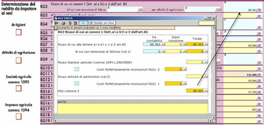 Per esempio nel quadro è presente la gestione per determinare i Ricavi al rigo RG2 col.3.