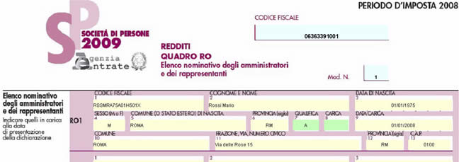 Nel quadro RO “Elenco nominativo degli amministratori e dei rappresentanti” compilare direttamente il modello