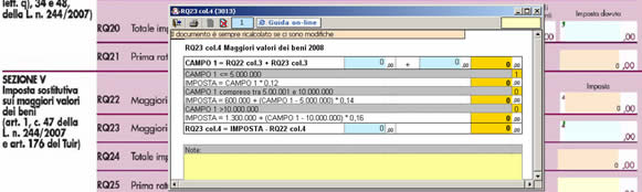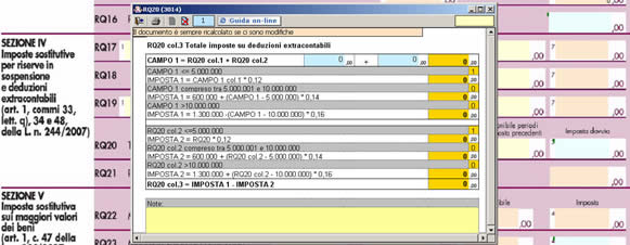 - nella sezione IV per il calcolo dell’imposta sostitutiva dovuta determinata complessivamente applicando le aliquote del 12, 14 e 16 per cento agli scaglioni previsti al comma 48 art.1 legge 244 del 2007 , tali scaglioni vanno applicati alla somma degli importi indicati nelle colonne 1 e 2.