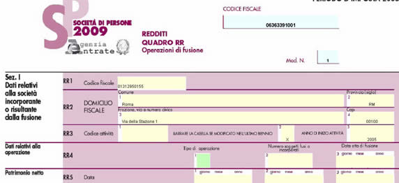 Nel quadro RR “Operazioni di fusione” inserire direttamente i dati nel modello.