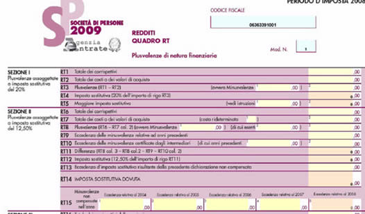 Nel quadro RT “Plusvalenze di natura finanziaria” inserire direttamente i dati nel modello.