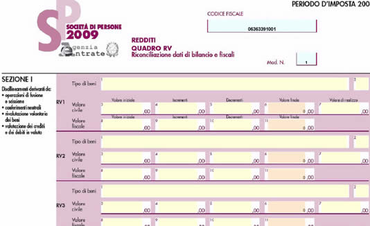Nel quadro RV “Riconciliazione dati di bilancio e fiscali” inserire direttamente i dati nel modello
