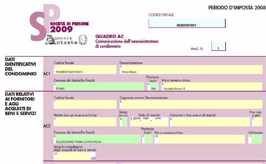 Nel quadro AC “Comunicazione dell’amministratore di condominio” inserire direttamente i dati nel modello.