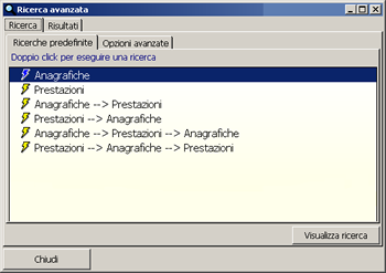 Nella sezione RICERCA è possibile scegliere i criteri della ricerca. Tale finestra è divisa in due sezioni: Ricerche predefinite ed Opzioni avanzate.