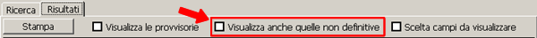 Inoltre nella sezione risultati è possibile scegliere di visualizzare anche i record relativi ad eventuali modifiche fatte nelle anagrafiche dei clienti in essere tramite l'apposito check "Visualizza anche quelle non definitive".